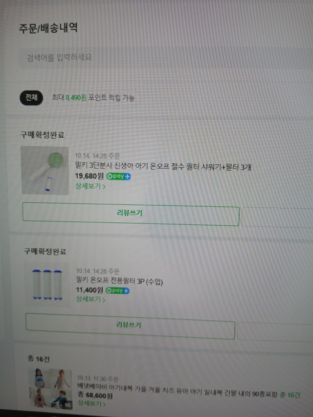 밀키 3단분사 신생아 아기 온오프 절수 필터 샤워기+필터 3개